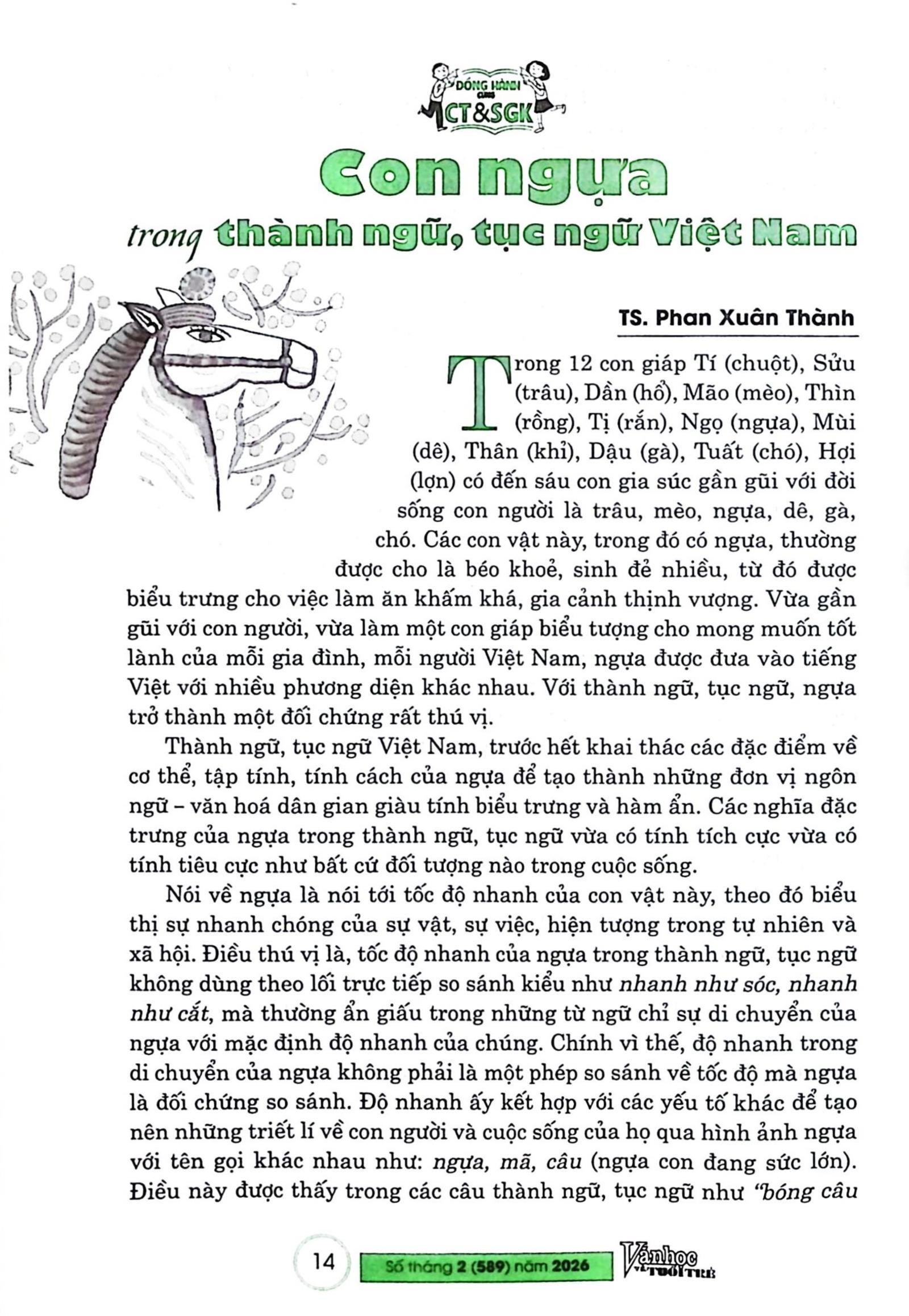 Con ngựa trong thành ngữ, tục ngữ Việt Nam / Phan Xuân Thành // Tạp chí Văn học và tuổi trẻ. - tr. 14 – 16. - Số tháng 2 (589) năm 2026.