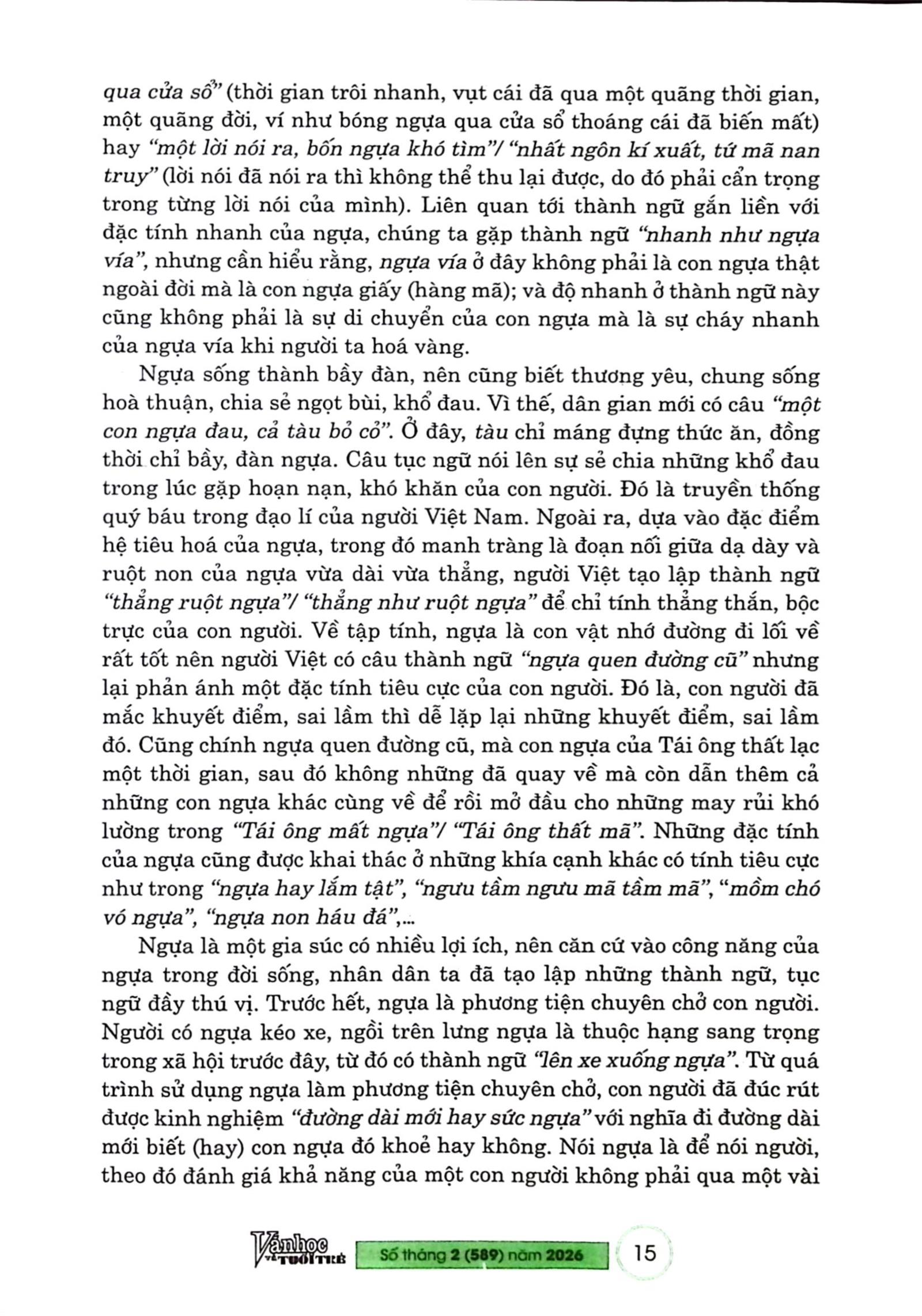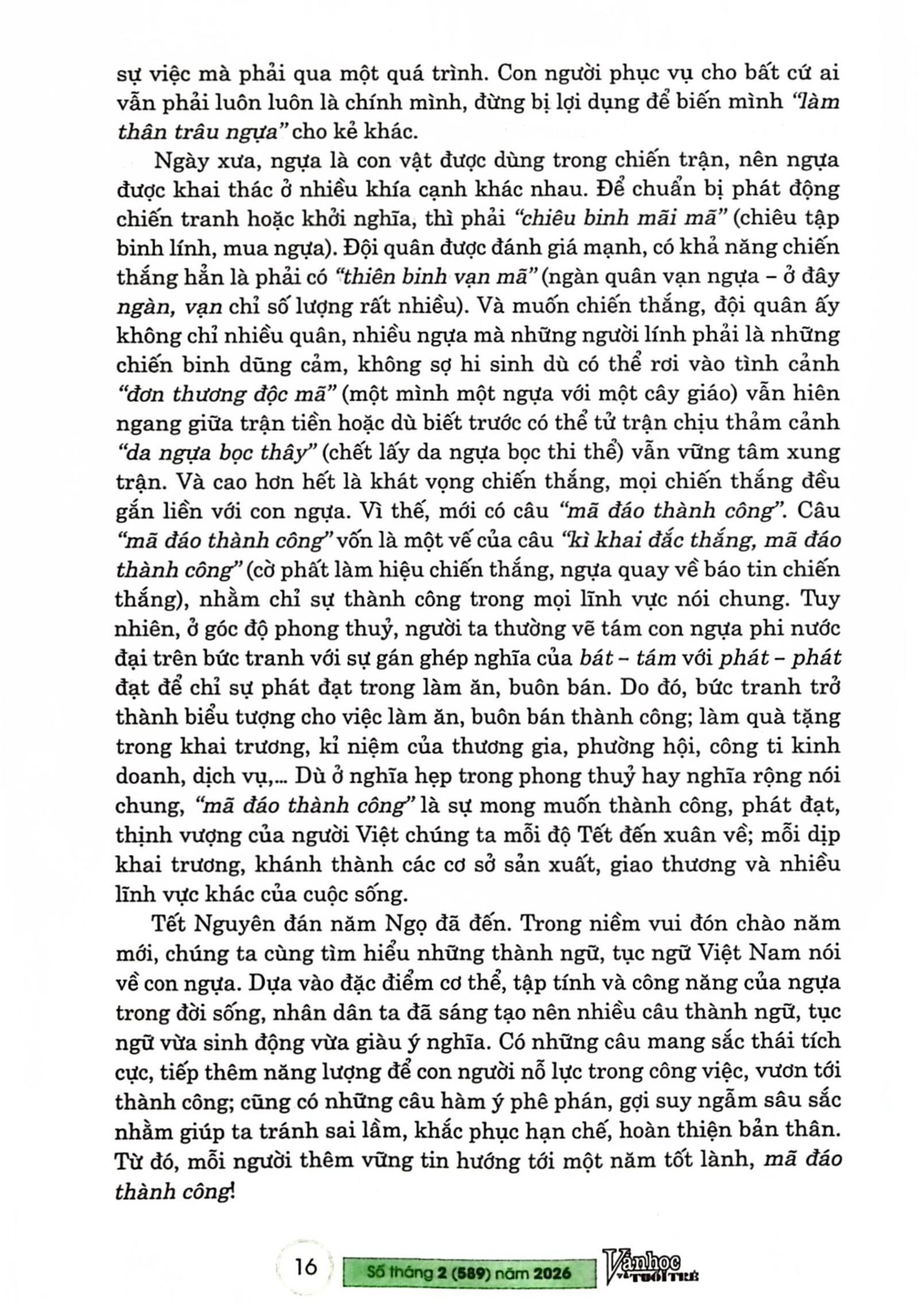 Bài trích tạp chí "Con ngựa trong thành ngữ, tục ngữ Việt Nam", Số tháng 2-2026