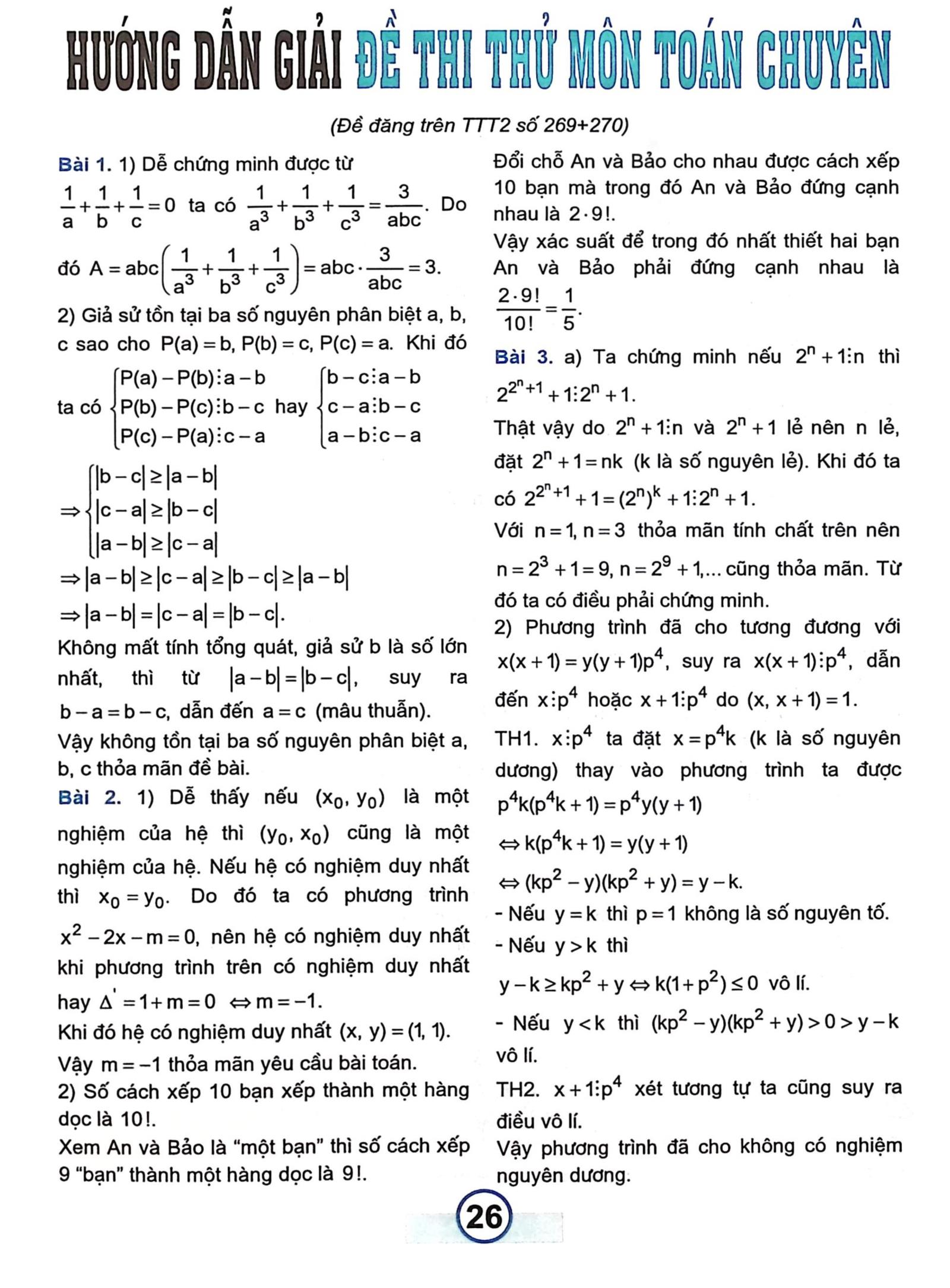 Bài trích tạp chí "Đề thi thử môn Toán chuyên, năm học 2025 - 2026", Số tháng 9 - 2025