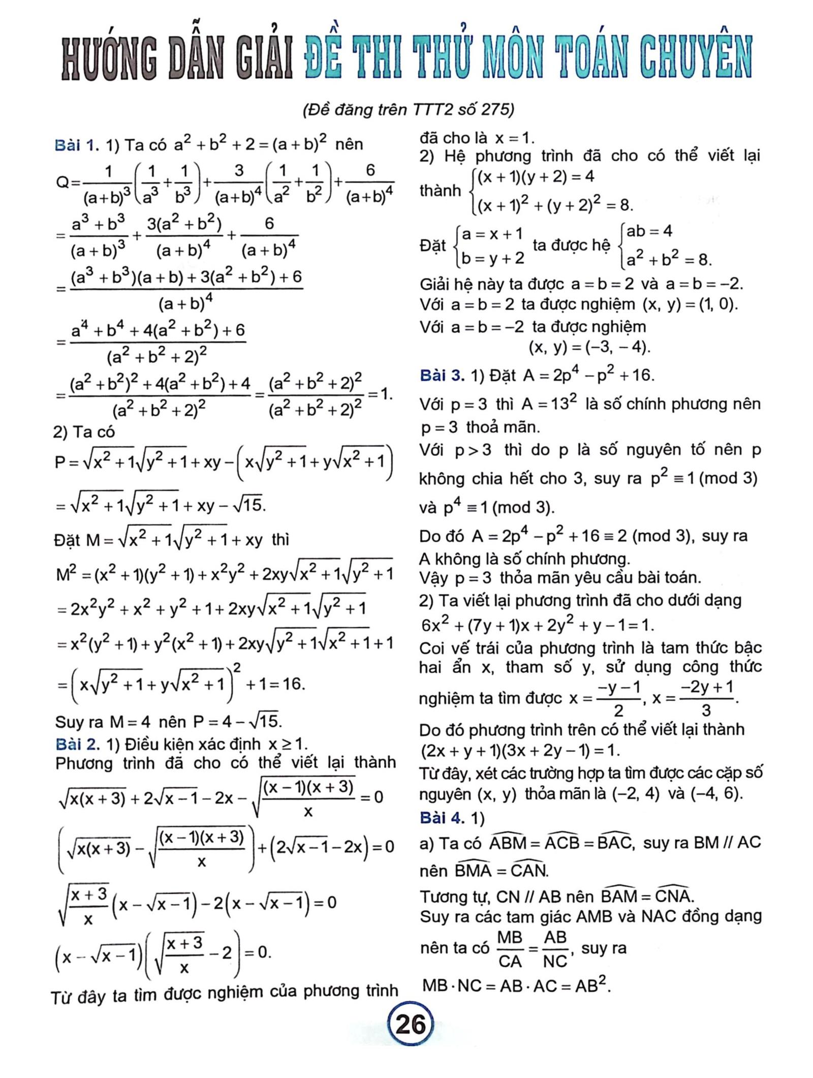 Bài trích tạp chí “Đề thi thử môn Toán chuyên, năm học 2025 - 2026”, Số tháng 1 - 2026